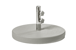 Concrete has been injected into moulded plastic to create this sleek and maneuverable light grey umbrella base.