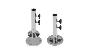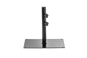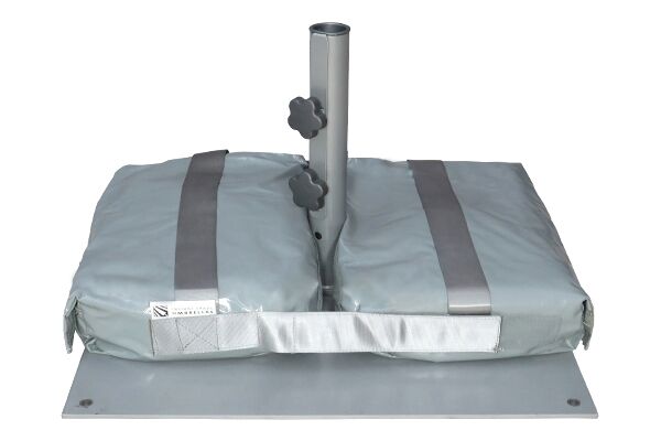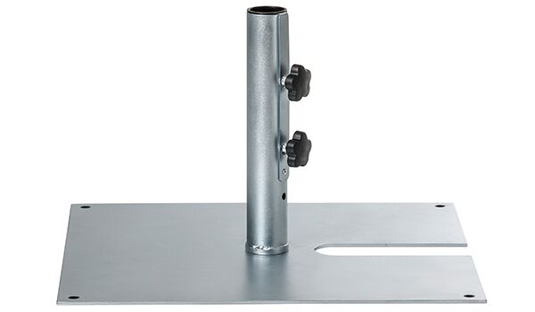 Black powder-coated plate designed for use with sandbags, pegs or can be bolted into concrete or decking. The pipe has double-locking screws to secure the umbrella.
