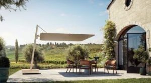 Different from other cantilever umbrellas on the market, the Versa UX umbrella has a unique flat canopy shape. It is a contemporary and minimalist design, boasting a flexible tilt and 360 degree rotation.