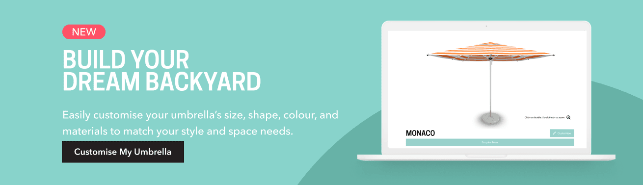 Check out our new and innovative customisable outdoor umbrella builder. A game-changer in personalizing your shade experience. This cutting-edge tool allows you to design the perfect umbrella solution for your space. Customise a variety of umbrella options including size, shape, color, and materials.