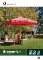 The Greenwich features a polished silver anodised aluminium frame, solid aluminium central hubs and a decorative finial at the peak of the umbrella. Premium Acrylic Canvas is also the standard and comes with a 5-year warranty against fading.