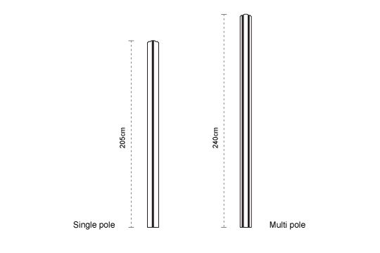 Paraflex single pole – 220cm (1x umbrella)Paraflex multi pole – 230cm (4-5 umbrellas on one pole)